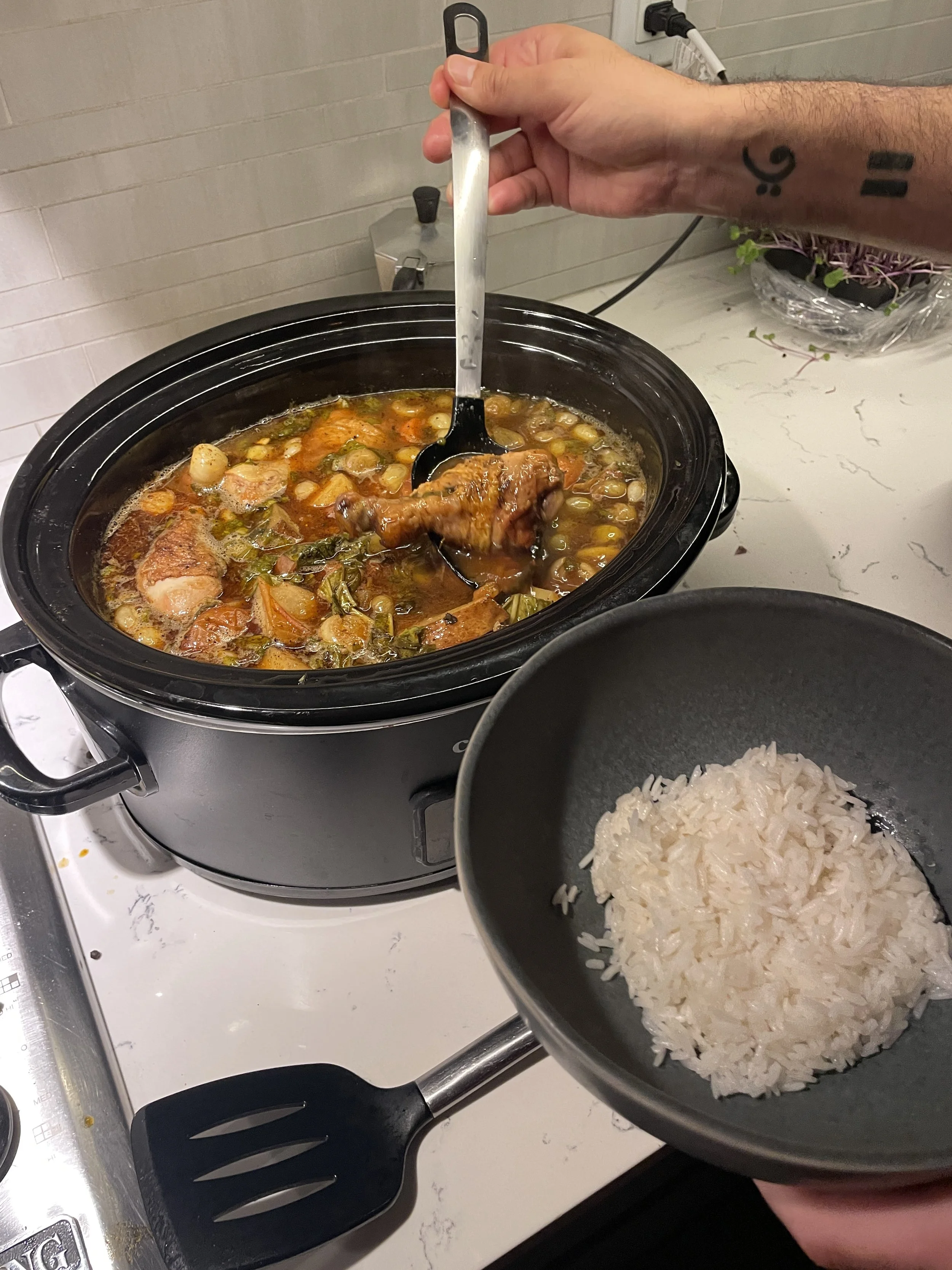 Bring to a boil, then reduce to a simmer. Cook for at least 25 minutes, or until the vegetables are fork tender and the chicken is falling off the bone. For extra tenderness, let it go low and slow for up to 2 hours.